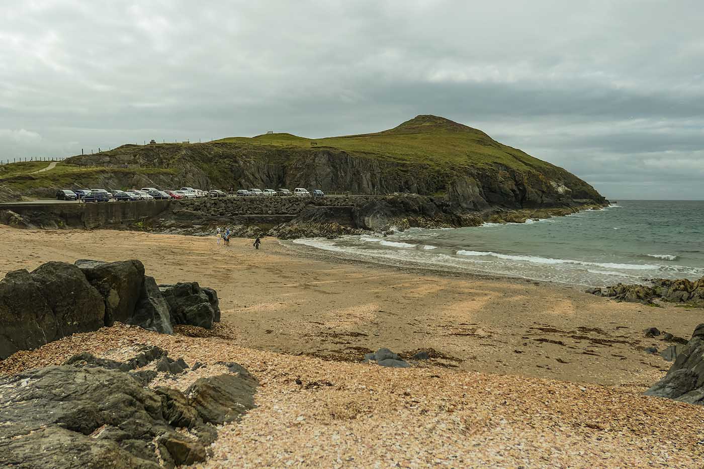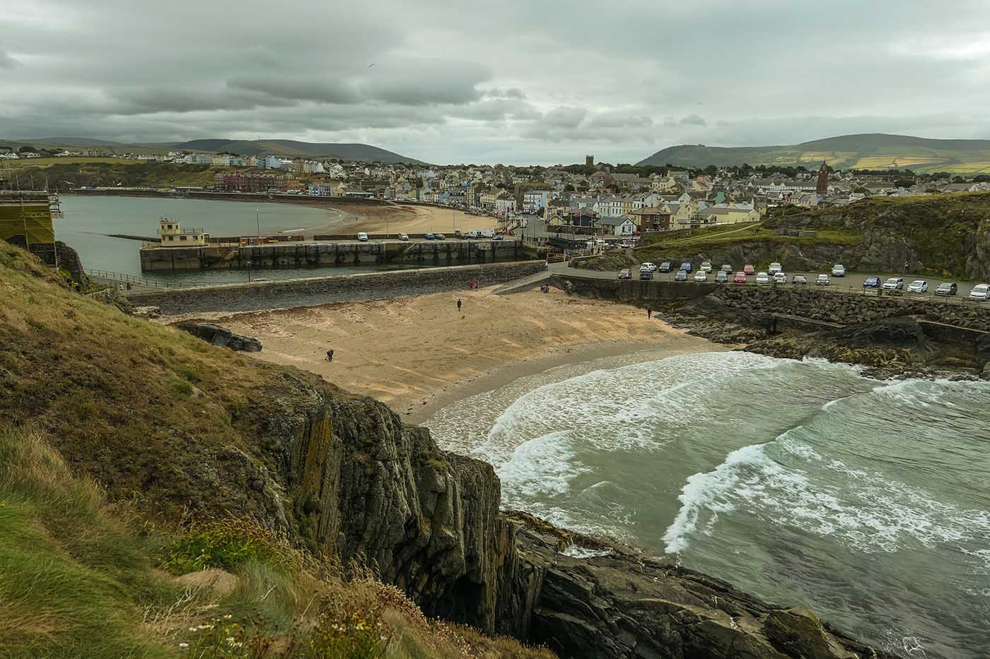 The beach has a car park and a small cafe near the lifeboat station and castle entrance. The main facilities are in Peel, a short walk away over the harbour swing bridge.