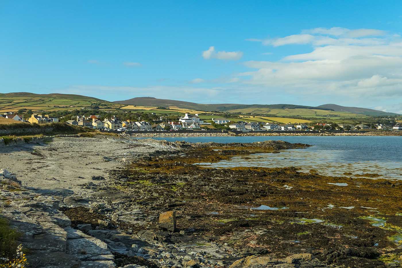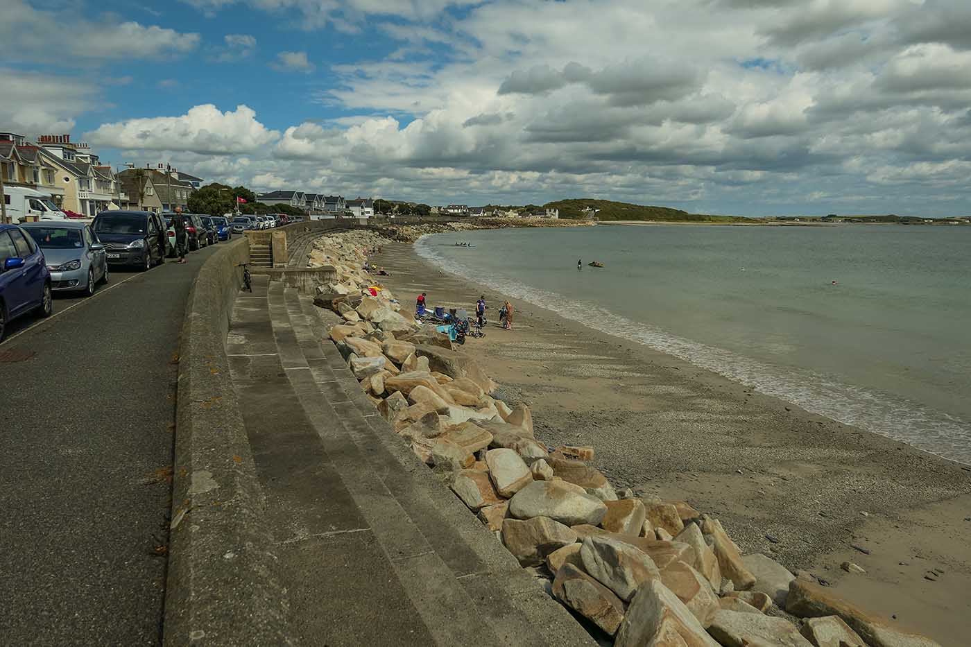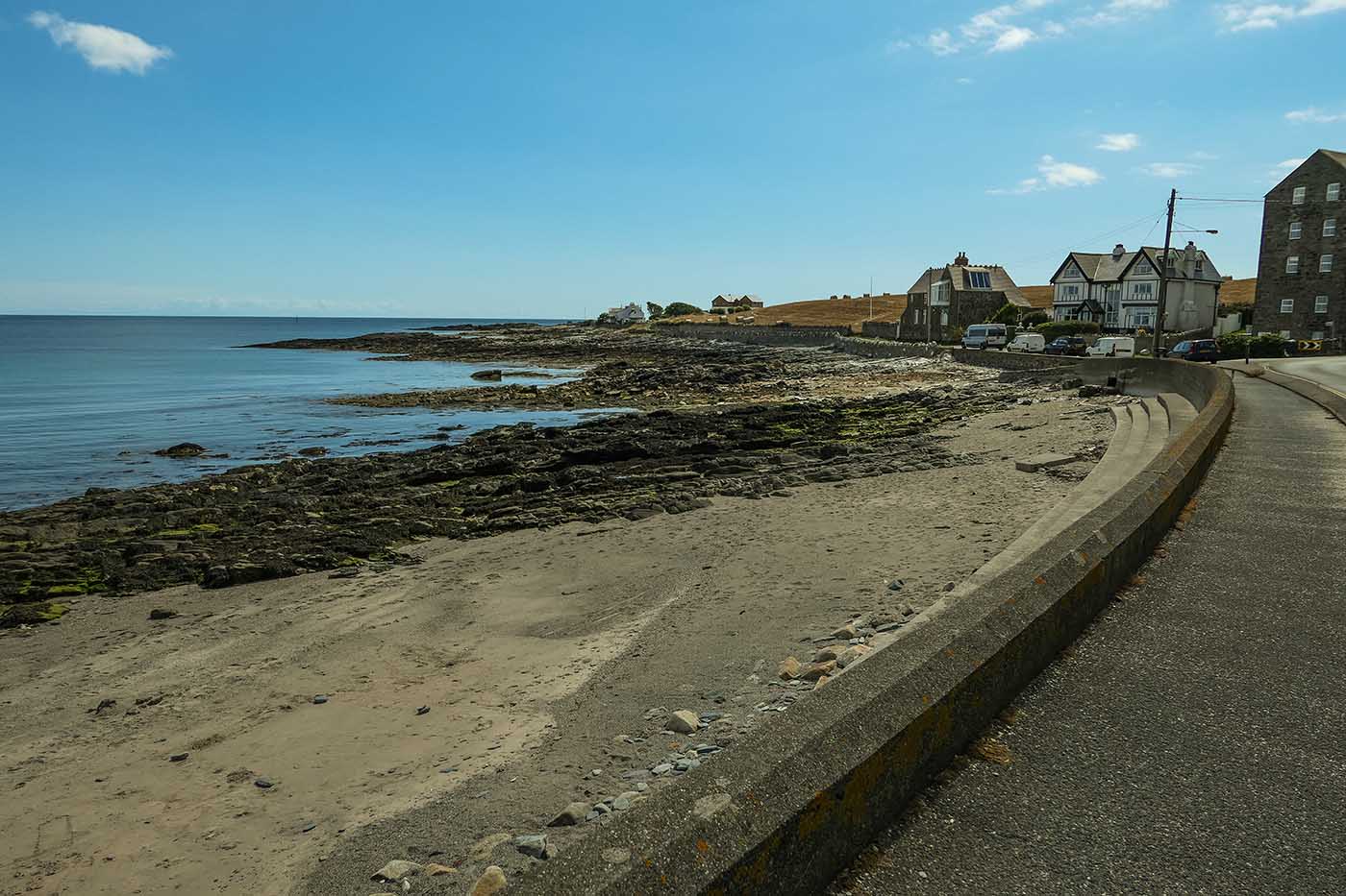 Gansey Bay Beach is an all-year dog-friendly sandy beach backed by rocks and a sea wall and when the tide is high, most of the beach disappears, and all you have is a few rocks.