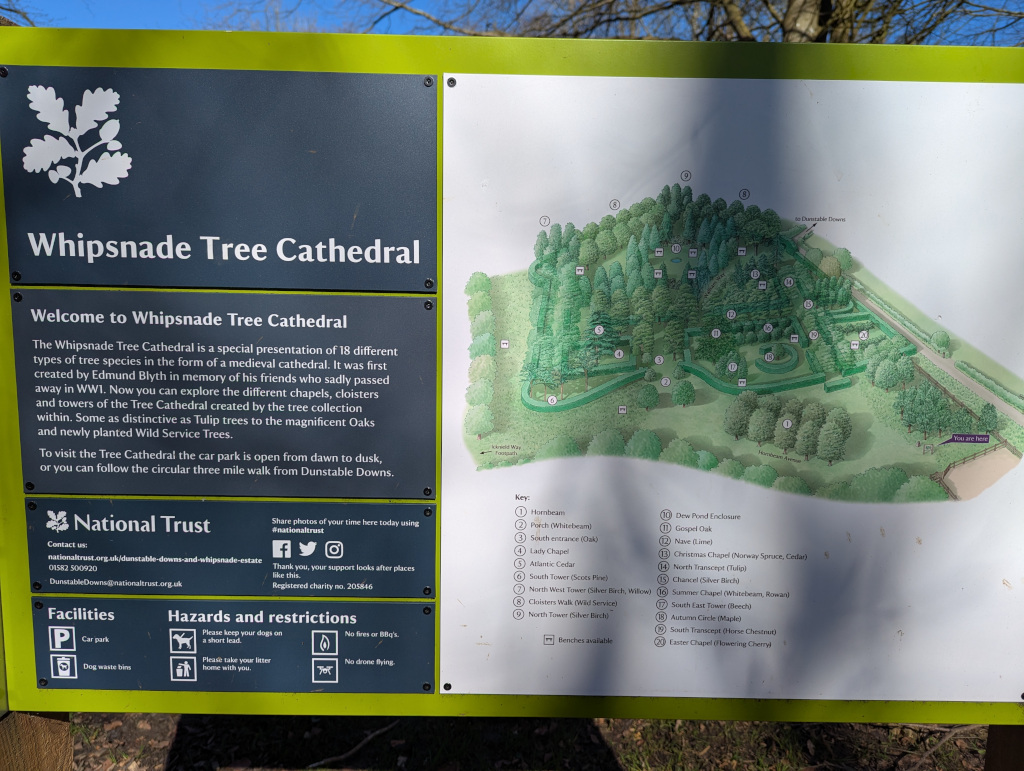 The Whipsnade Tree Cathedral is simple but well-kept. You have a small National Trust car park which is free, although there is a donations box.