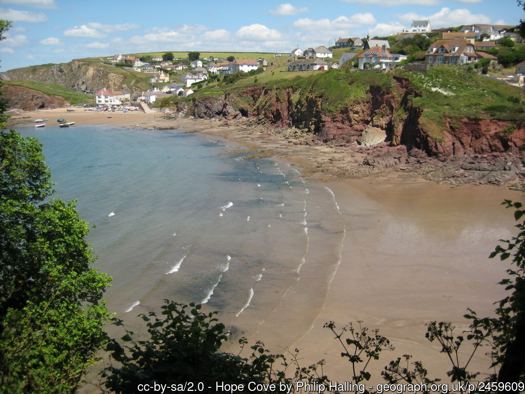 Mouthwell Sands does not allow dogs between 10 am and 7 pm, from 1st May to 30th September, but Hope Cove Beach allows dogs on a lead all year round.