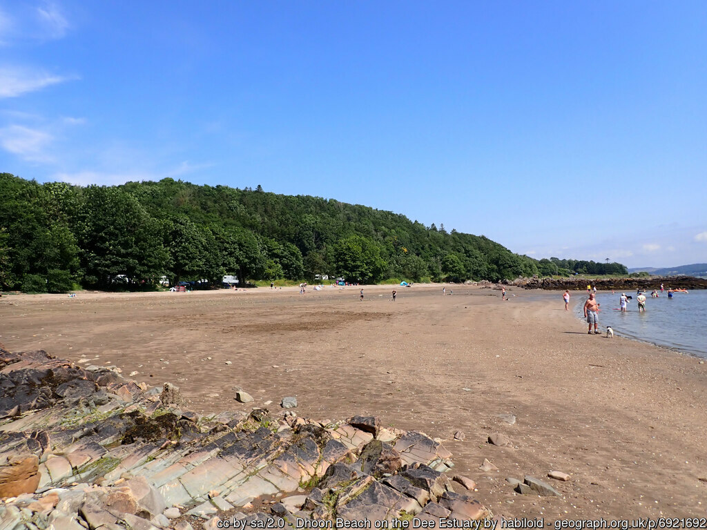 Dhoon is a sandy beach within Kirkcudbright Bay, also known as Nun Mill Bay which it looks out to. The beach slopes gently into the water, making it a great swimming beach, although it all but disappears at high tide.