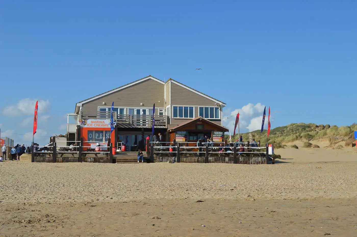 Facilities at the beach include seasonal lifeguards, public telephone, toilets with disabled access, children’s play area, slipway, Coastal Control Office for lost children, first aid, cafe and deckchair hire.