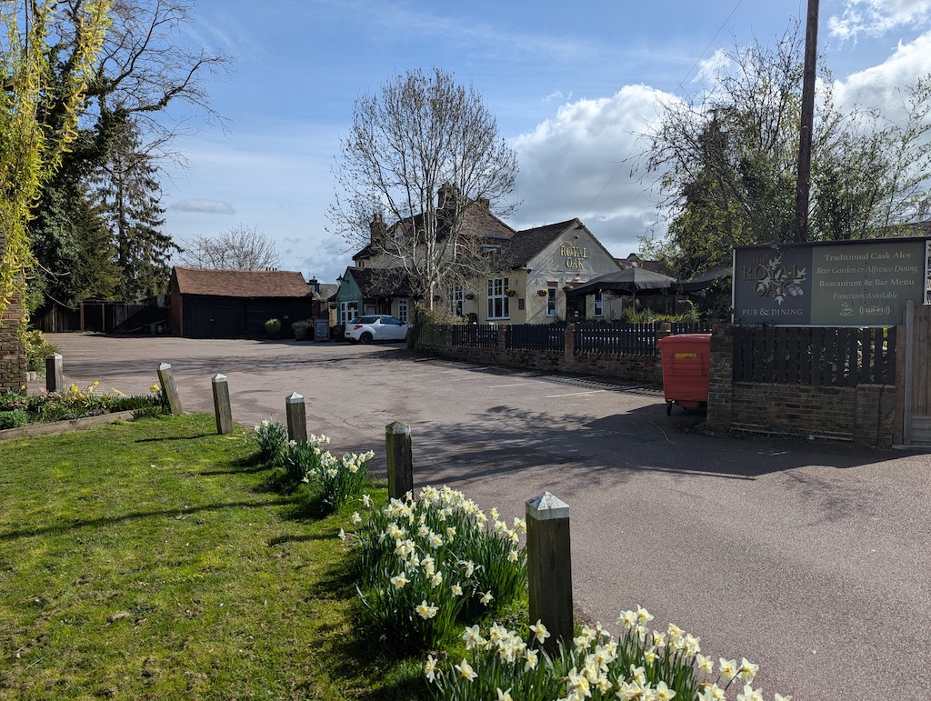 The Royal Oak has a car park available, though spaces can fill up during peak times. However, you are only a short walk from the free village long-term car park. If you’re relying on public transport, local bus routes serve the area, with stops a short walk from the pub.