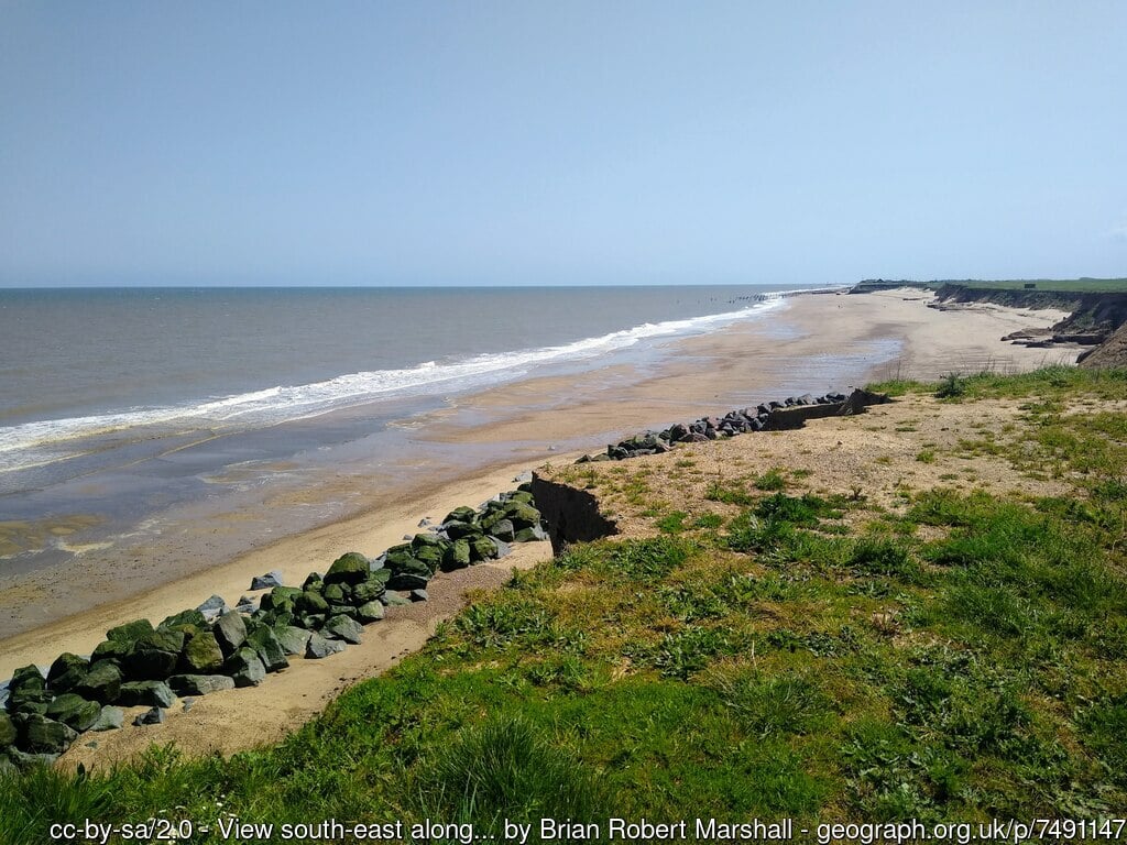 The beach is home to the striking Happisburgh Lighthouse, dating back to 1791, which provides a picturesque backdrop for the area. The nearby cliffs also add to the scenic beauty, offering views along the Norfolk coast.