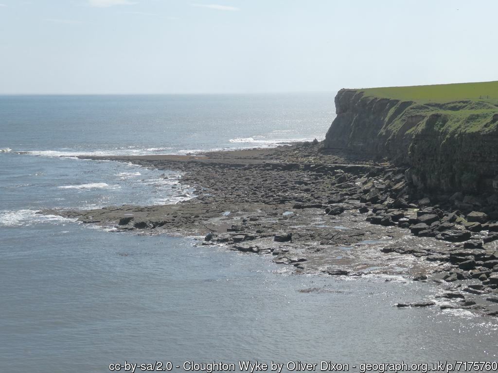 Cloughton Wyke is located just north of Scarborough, along the Cleveland Way National Trail. This picturesque bay is characterised by its dramatic cliffs, rocky shoreline, and lush surrounding coastline. “Wyke” originates from Old Norse, a small bay or creek.