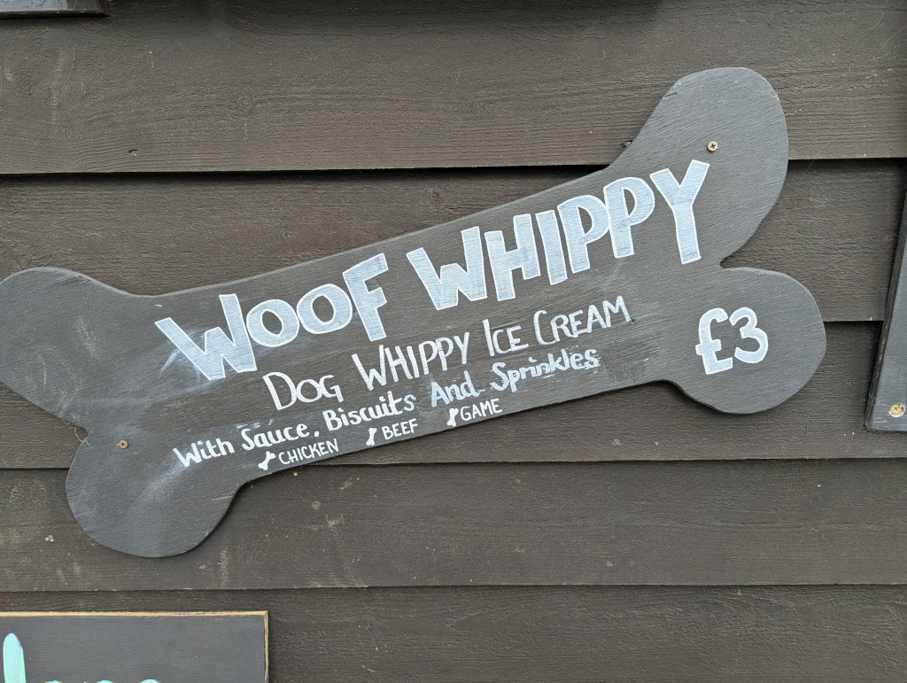 Dog-friendly outdoor seating and sells Doggy Whippy Ice Cream.