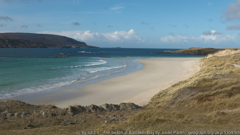 The beach is accessible by car, with a parking area close to the beach. The road to Balnakeil Bay is scenic, though it can be narrow and winding, typical of remote Scottish roads.