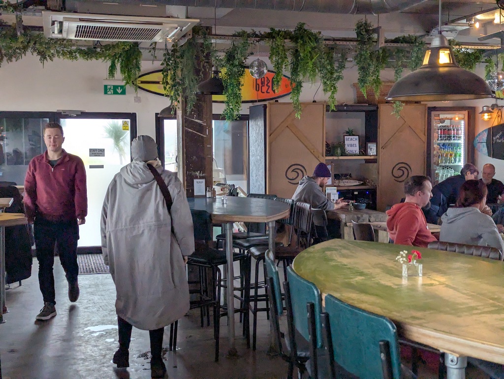 Food is served both indoors and outside with sea views from many tables, offering a relaxed, contemporary cafe-bar vibe. The emphasis is on generous portions, fresh ingredients, and family-friendly presentation. Menus change throughout the day. If you are looking for something specific, please note that, for example, on our last visit, a table was booked at 12:15 on a Sunday, the breakfast menu had finished, and the Sunday menu was in effect.